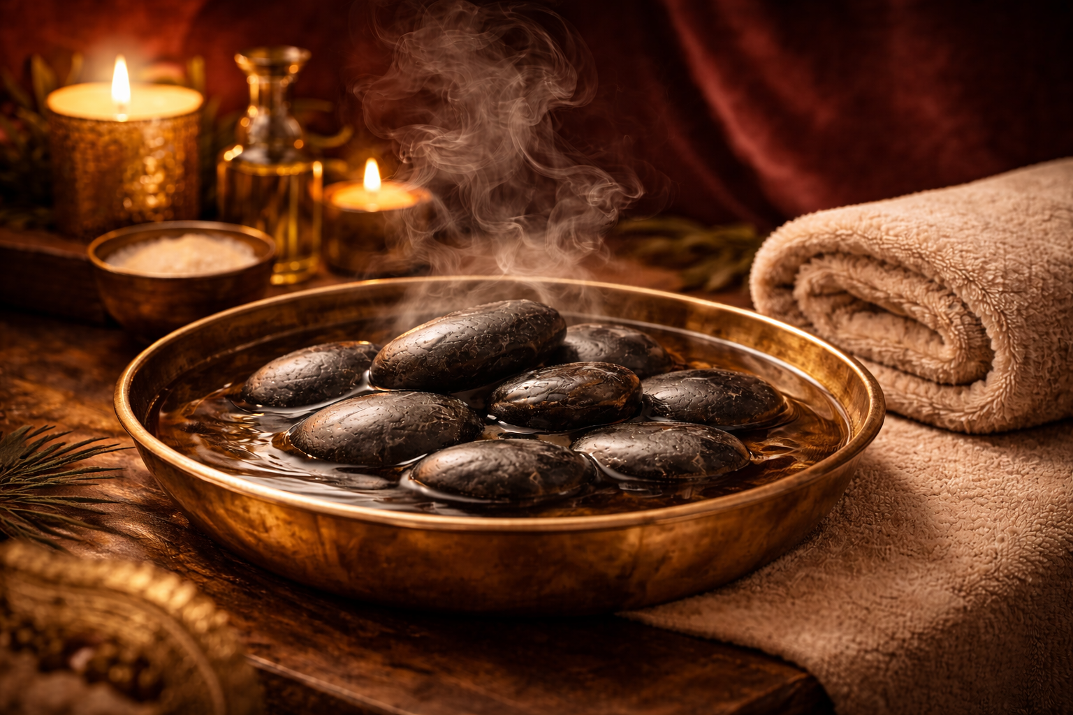 Die Hot-Stone-Massage kombiniert die wärmende Wirkung erhitzter Basaltsteine mit klassischen schwedischen Massagegriffen. Die warmen Steine lockern die Muskulatur, fördern die Durchblutung und ermöglichen eine besonders tiefe Entspannung der Muskeln.