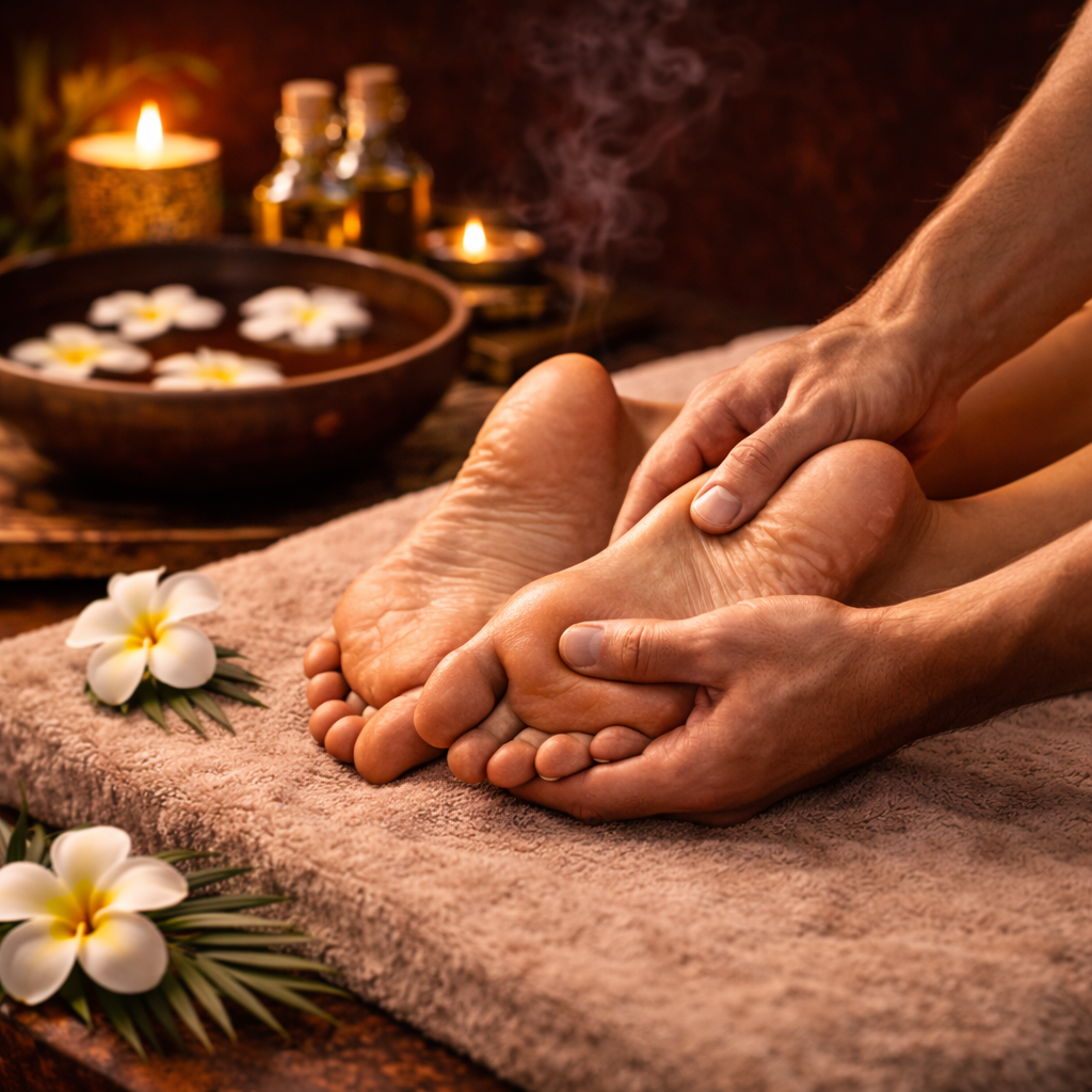 Die Fußmassage entspannt die Muskulatur der Füße und fördert die Durchblutung, während gleichzeitig der gesamte Körper zur Ruhe kommt. Durch gezielte Massagegriffe werden Verspannungen und Druckpunkte gelöst, was zu einem angenehmen Gefühl von Leichtigkeit und Entspannung führt.